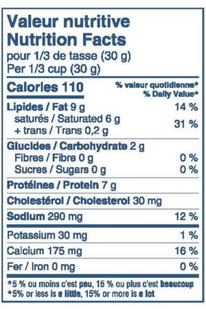 Pasteurized milk, Modified dairy ingredients, Bacterial culture, Salt, Microbial enzyme, Calcium chloride.